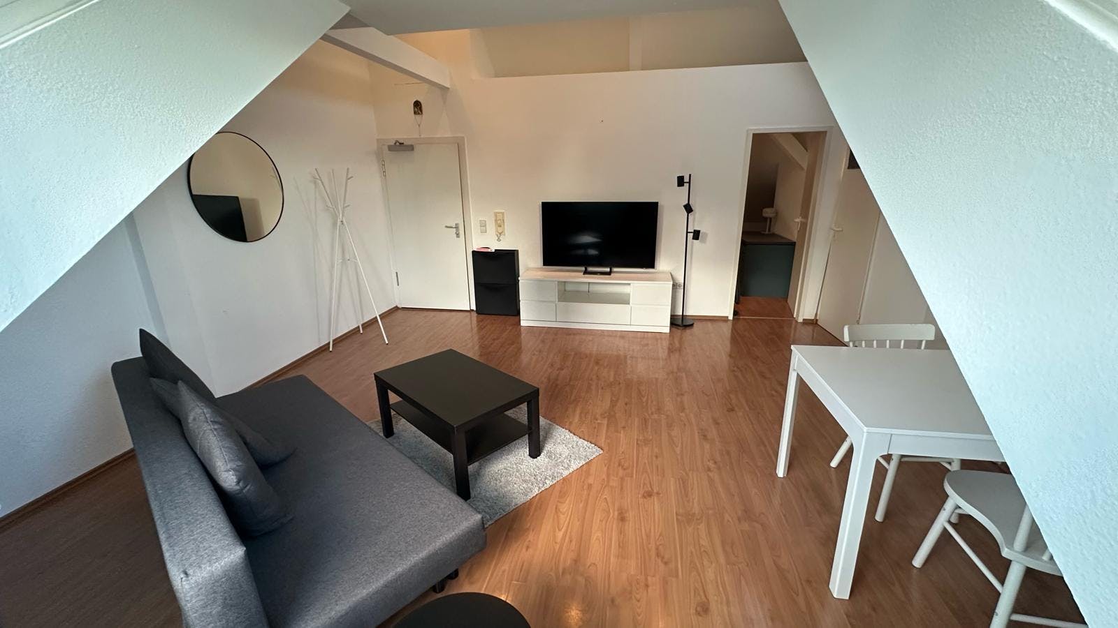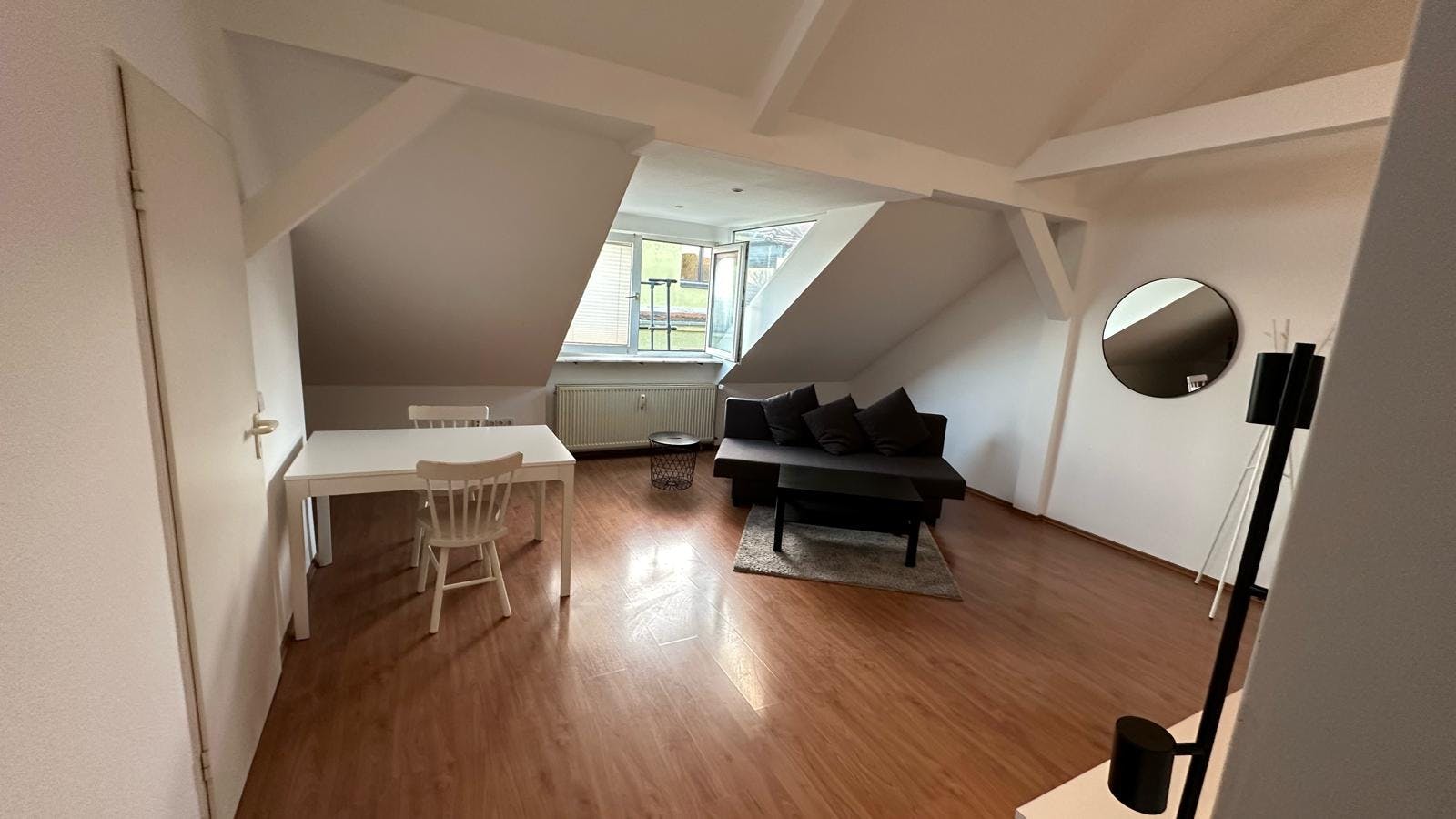Aufgepasst: Dieses im allerbesten Stadtteil Frankfurt Bockenheim gelegene möbliertes Appartement bietet Komfort pur. Es ist mit allem ausgestattet, was Du für einen angenehmen Aufenthalt benötigst. Der schöne Altbau ist in einer ruhigen Straße, hat eine perfekte Anbindung an den öffentlichen Verkehrsmitteln und ist stadtnah. Eine Vielzahl an Geschäften ist in unmittelbarer Nähe und zu Fuß erreichbar. Das wunderschöne Zimmer schafft eine „Wohlfühl“-Atmosphäre, sobald Du das Zimmer betrittst. Für einen erholsamen Schlaf steht Dir ein Boxspringbett mit den Maßen ca. 1,40m x 2,00m zur Verfügung. Außerdem findest Du einen Kleiderschrank für Deine Garderobe, einen Tisch und Stuhl für Arbeit oder Studium. Im Wohnzimmer...