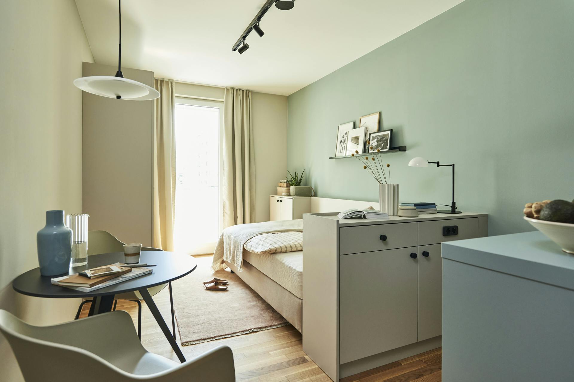 Located right next to Frankfurt’s Ostbahnhof, this modern residential concept combines smart design, premium architecture, and well-thought-out living solutions – all in one building with 275 exclusive apartments. Here, you’ll enjoy high comfort, maximum flexibility, and an atmosphere that truly inspires. This stylish studio apartment offers 19–22 m2 of optimized living space – ideal for anyone seeking a premium retreat with urban flair. Apartment Highlights: ✔ Bright, light-filled living space with private balcony – your personal retreat to relax ✔ Design kitchenette – fully equipped and perfect for your culinary moments ✔ Cozy bed (120x200 cm) & custom-built storage – smart space solutions for maximum comfort ✔...