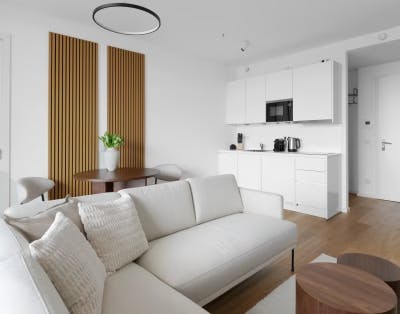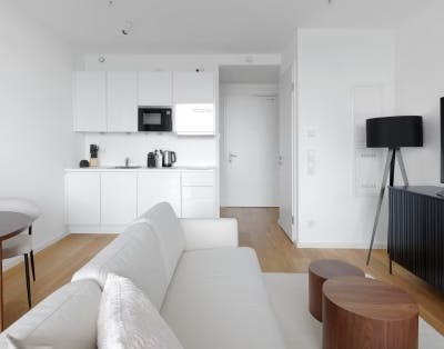 ?️ Luxury 1-Bedroom Apartment on 11th Floor – Eden Tower, Central Frankfurt ??✨ Live above the skyline in this premium 1-bedroom apartment on the 11th floor of Eden Tower, located in Frankfurt’s Europaviertel. Offering sweeping city views and elegant interiors, this apartment combines comfort and design in one of the city's most iconic high-rises. HOUSE ? Eden Tower – a modern high-rise with green façade and concierge service ? Elevator access, 24/7 reception, and secure entry ? On-site fitness studio and community areas for residents ? Name tag on mailbox possible APARTMENT ?️ Separate bedroom with a double bed and built-in wardrobe ?️ Living area with Smart TV, dining...