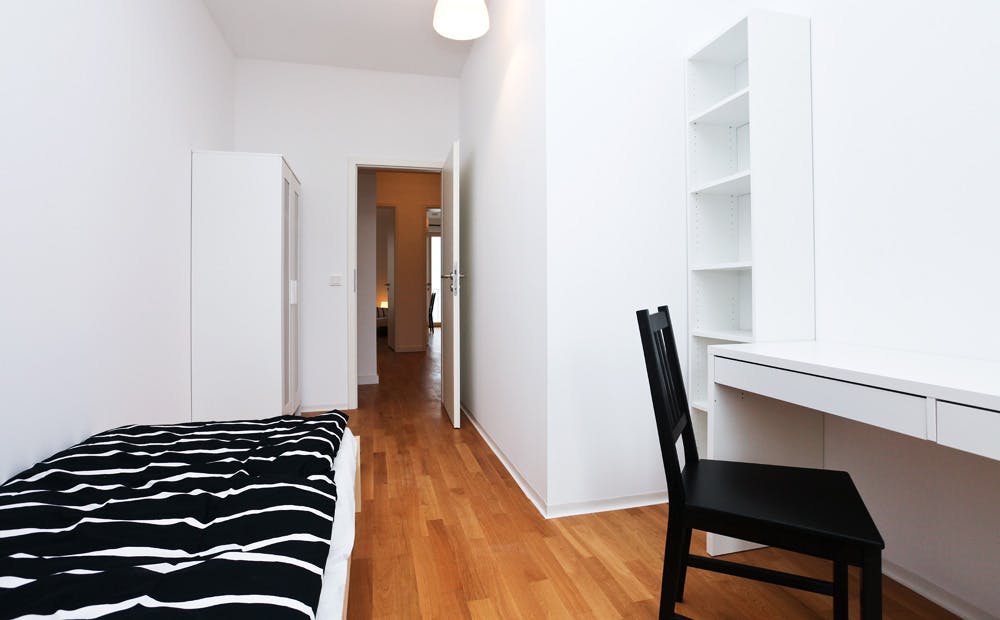 ROOM Our flats fulfil all your daily living requirements. Every flat comes readily equipped with a kitchen, including refrigerator, cooking equipment and dishes. Flats also include a washing machine and Wi-Fi Internet. Each room is fully furnished and offers a comfortable bed with fresh linen and a workspace. The area provides you with several shopping opportunities and excellent connections to public transport.