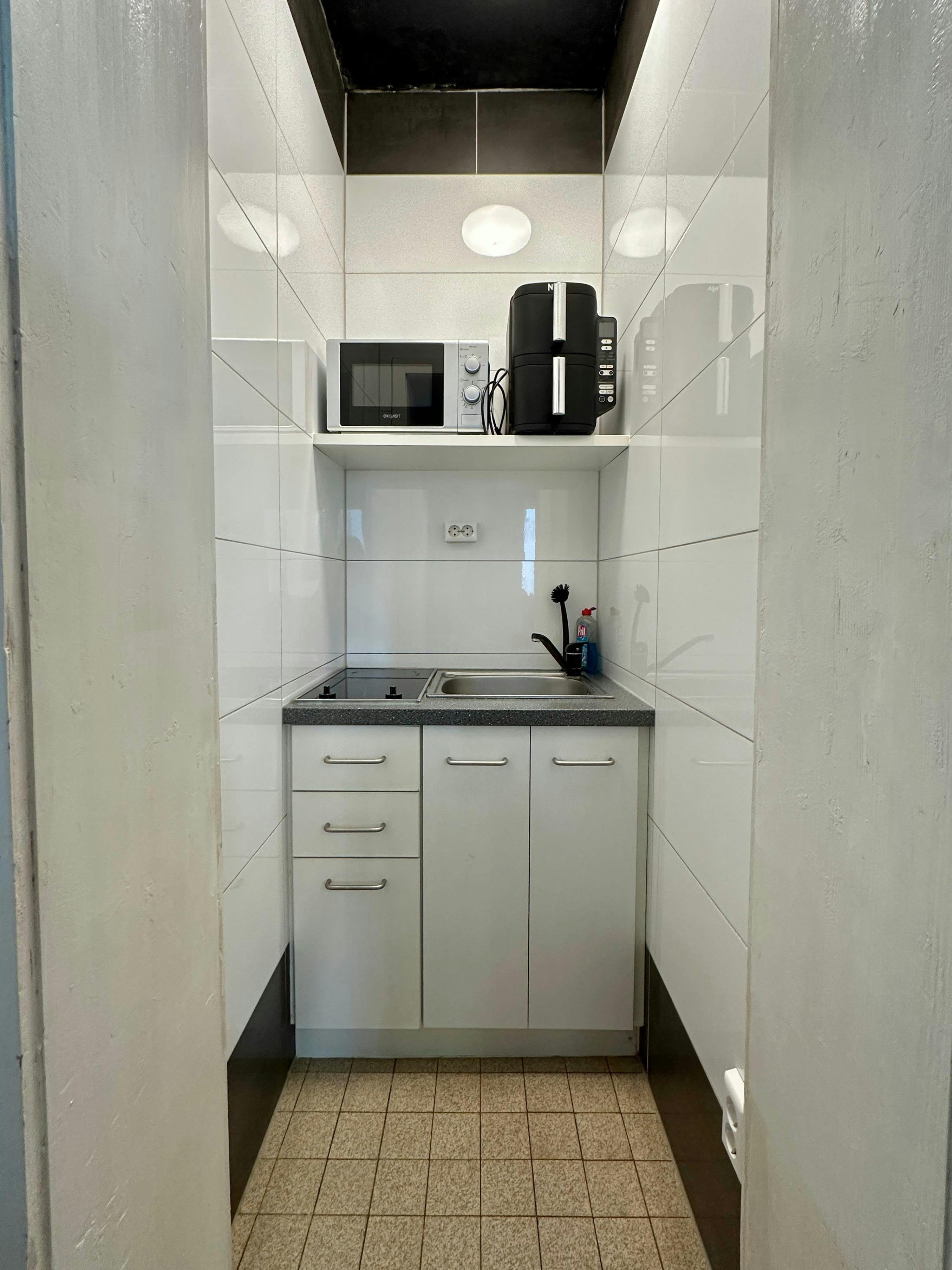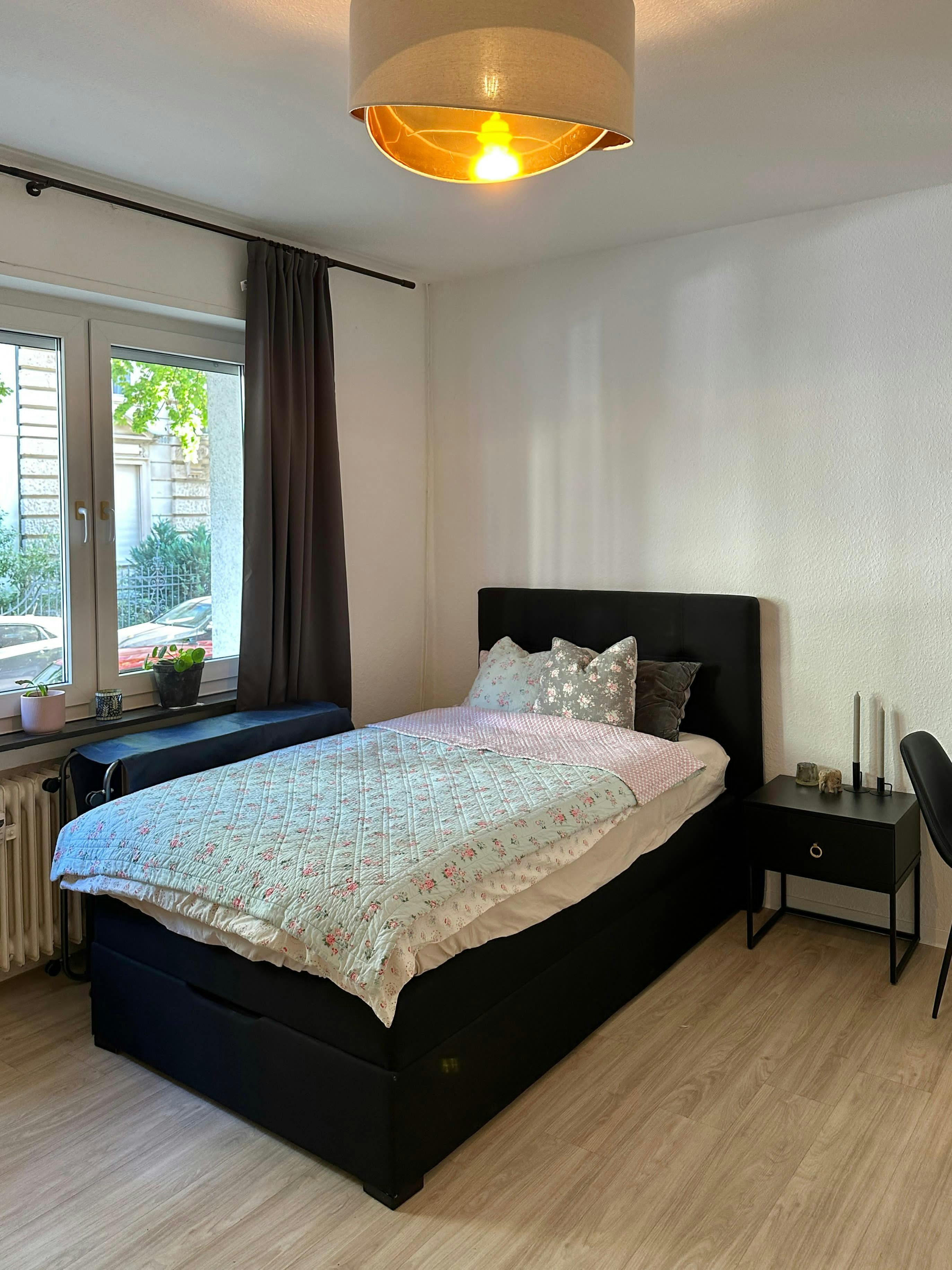 Welcome to your new home in Frankfurt’s popular Westend! This modern one-room apartment on the ground floor of a well-kept multi-family house impresses with its prime location, clever layout, and bright, friendly atmosphere. Covering about 30 m2 of living space, you will find a fully furnished apartment that is move-in ready – just pack your bags and settle in! The light-filled living and sleeping area is tastefully furnished and features a comfortable box-spring bed, a modern workspace with desk and chair, as well as a small dining area. The pantry kitchen is compact but well-equipped, offering a stovetop and plenty of...