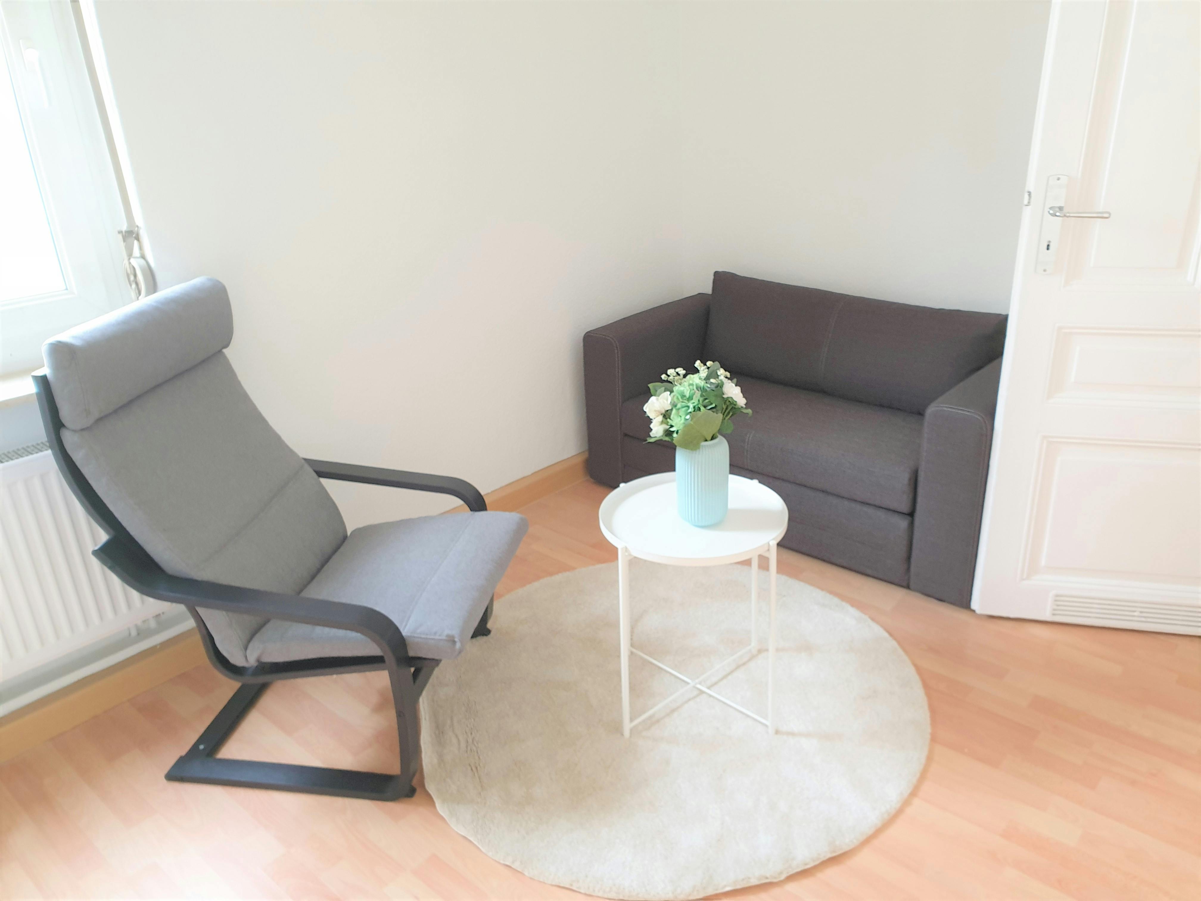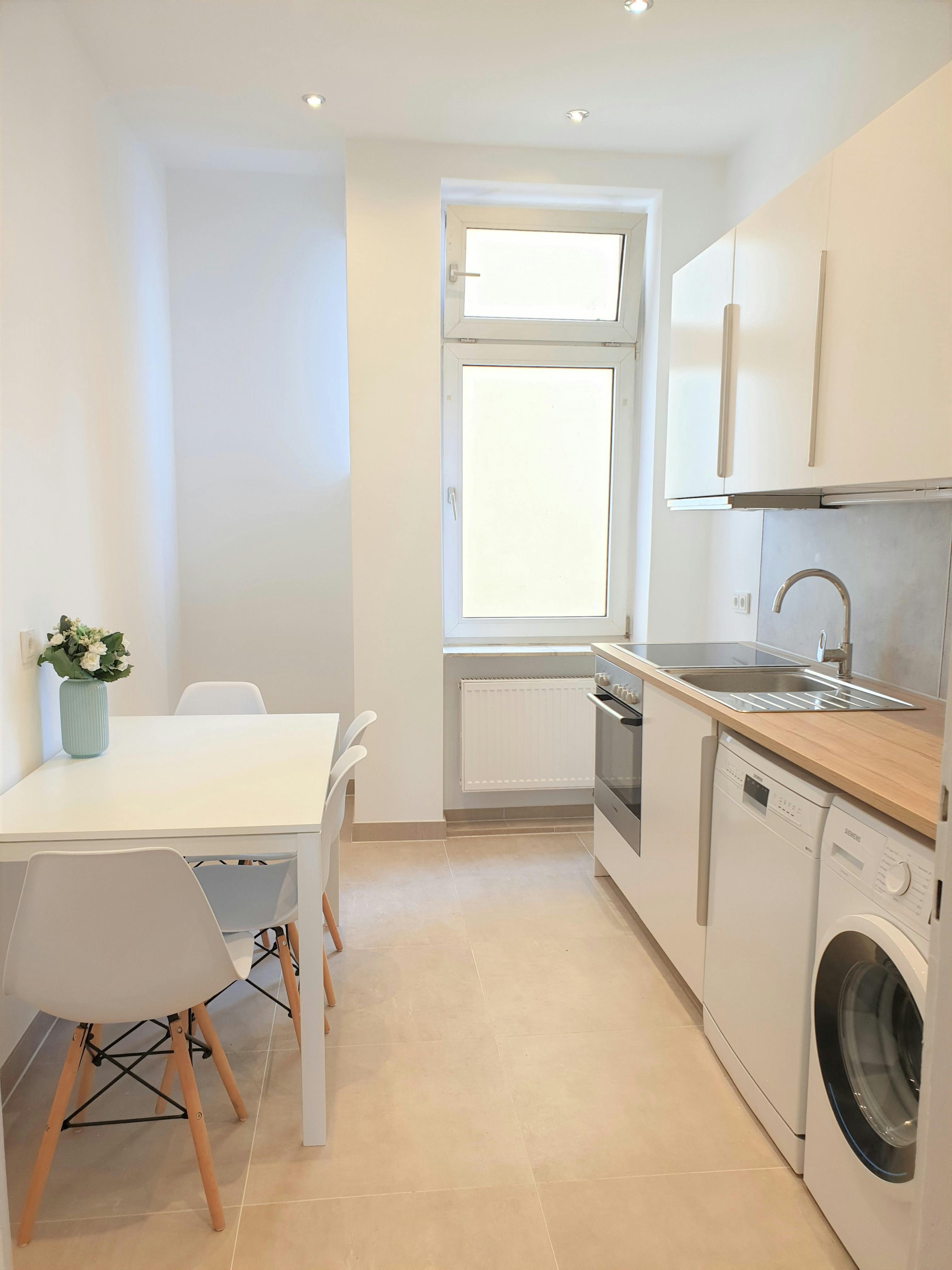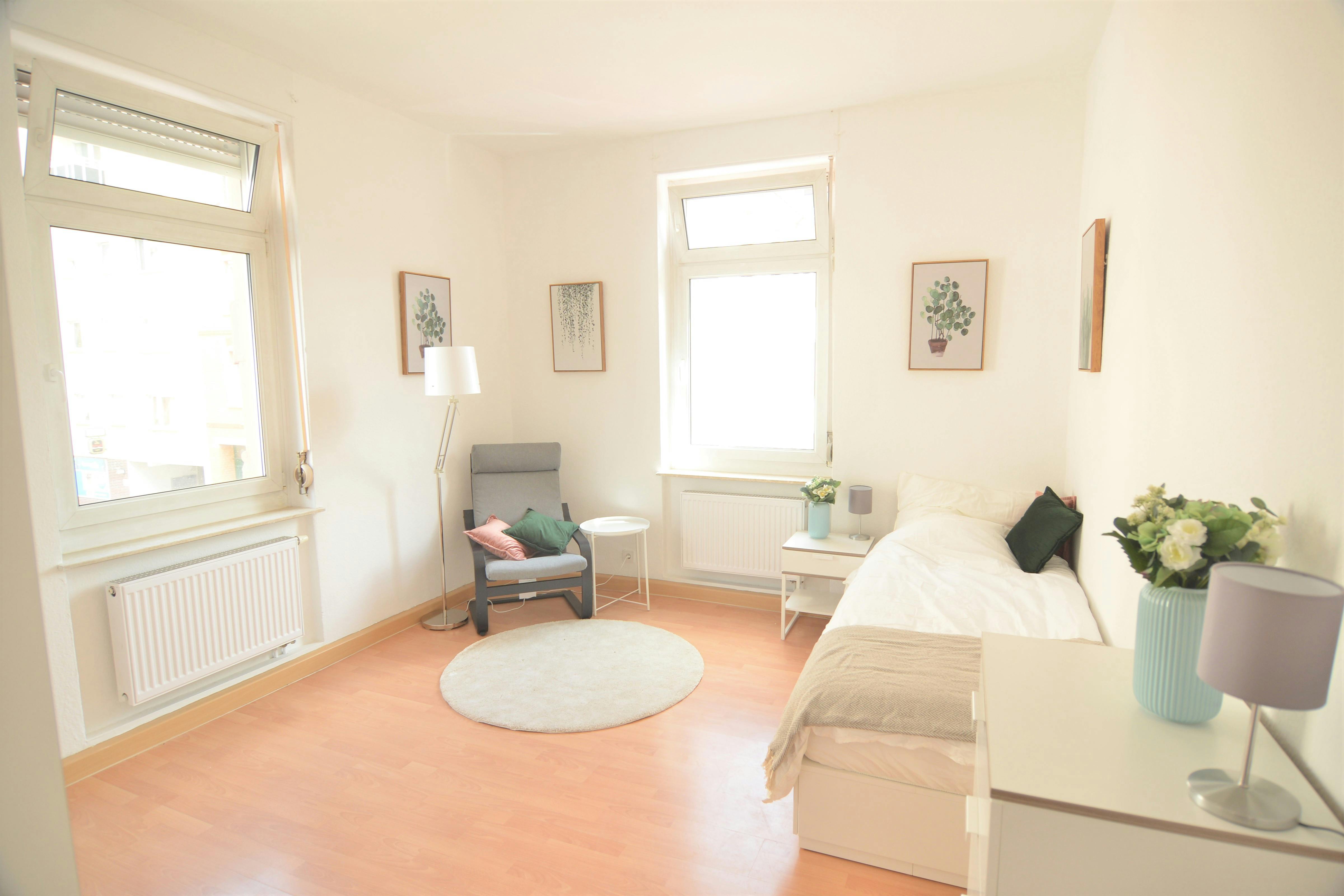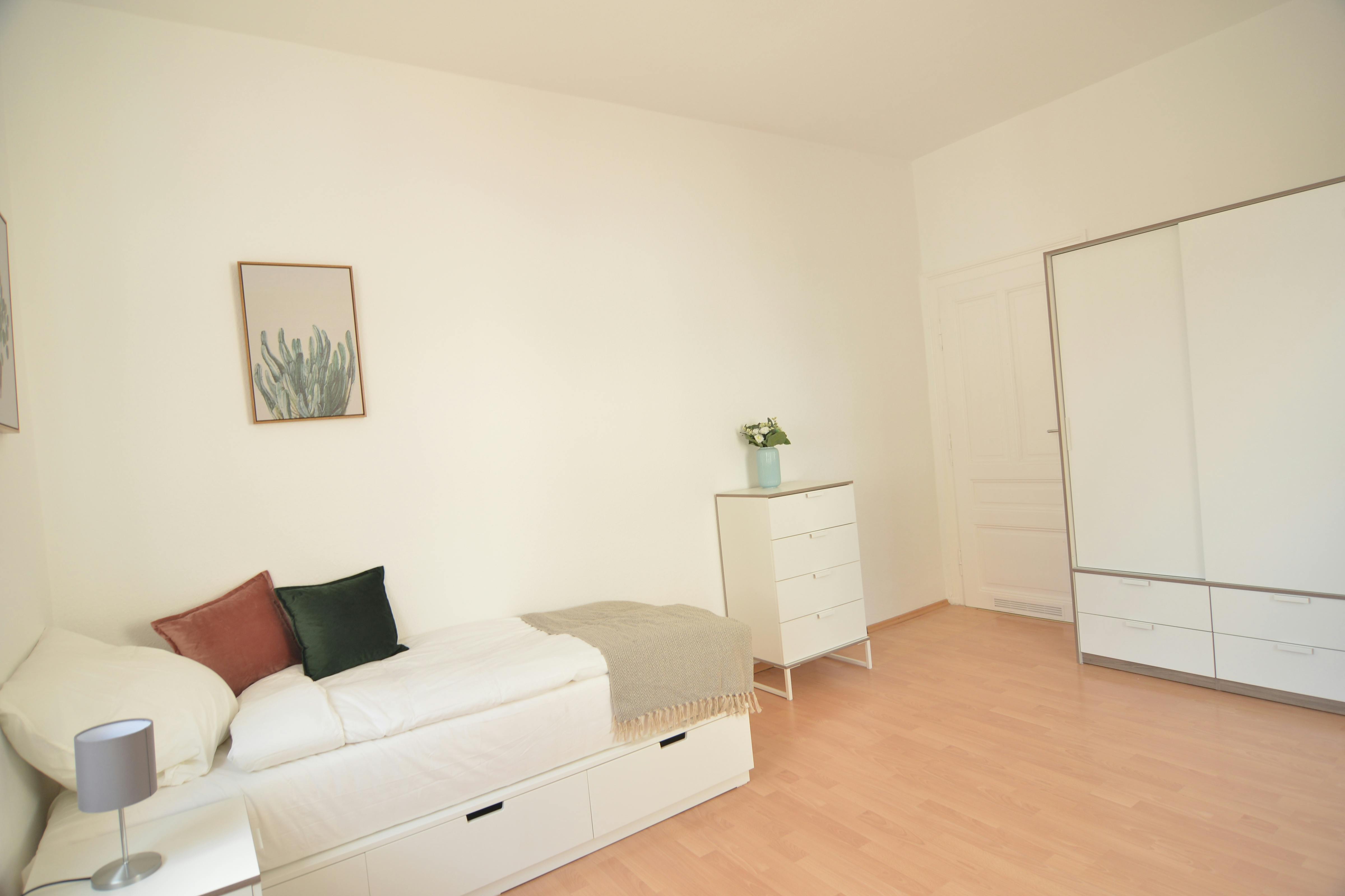 Die Wohnung ist durch seine Ecklage besonders lichtdurchflutet, verfügt über ein neues Badezimmer mit Handtüchern und eine neue Küche, die nicht nur mit Geschirr und Kochutensilien, sondern auch einer neuen Waschmaschine, Spülmaschine und einem Kühlschrank ausgestattet ist. Darüber hinaus verfügt die Wohnung über folgendes, modernes Mobiliar: - 4 Einzelbetten mit Matratzen - neue Bettwäsche (inkl. Wechselbettwäsche) - Kopfkissen - Nachttische mit Nachttischlampen - großzügige Schränke mit Kleiderbügeln - Kommoden - Esstisch mit vier Stühlen - Lesesessseln - Leselampen - Schlafcouch - großer Flatscreen TV - schnelles WLAN Komplett ausgestattete Küche mit: - Gläsern - Besteck - großen Tellern, kleinen Tellern & Schalen - Töpfen und Pfannen - Kaffeetassen - Waschmaschine - Spülmaschine - Kühlschrank Das charmante Apartment ist fußläufig von allen öffentlichen Verkehrsmitteln...