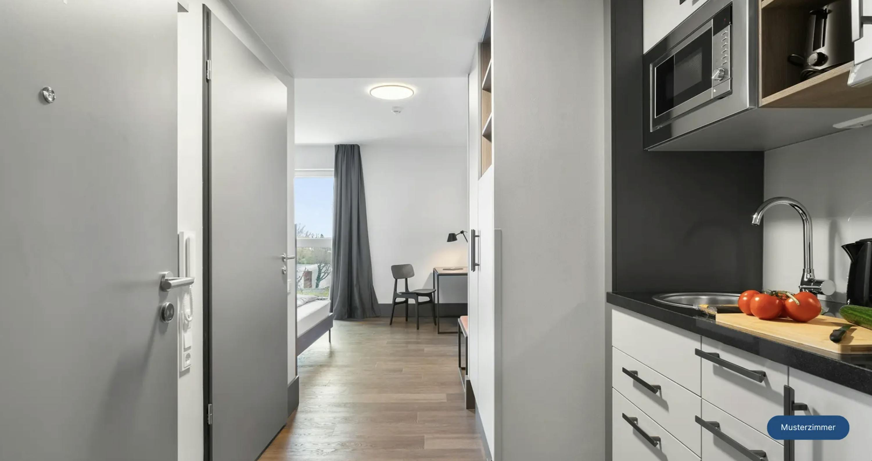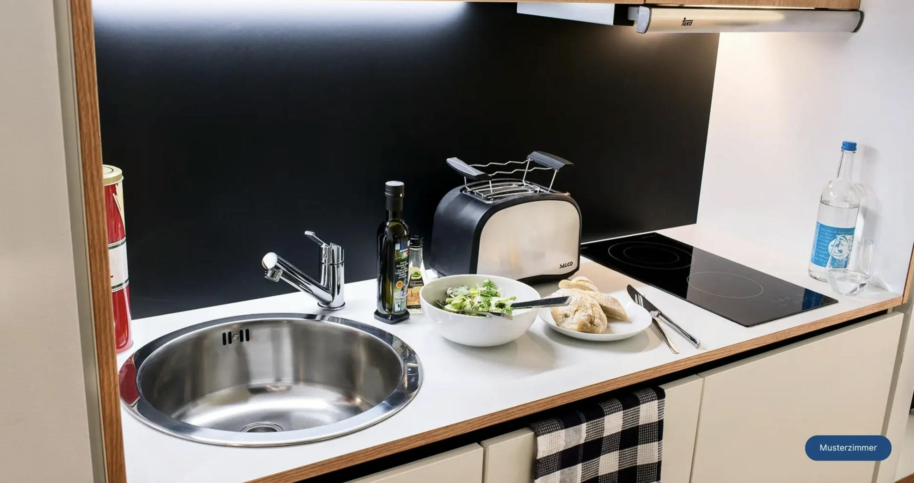 Allgemein: 2 Pers. bis 26 m2 Bett 160 cm Highspeed-Internet Persönlicher Briefkasten Gegensprechanlage Raumkühlung Gebäude 24/7-Check-In Living Lobby Snack- & Getränkeautomat Laundry-Room Putzmittelraum PKW-Stellplätze Fahrradstellplätze Gastronomie in der Nähe Wohnbereich: Smart-TV Sitzgelegenheit Esstisch Kleiderschrank Küche: 2 Kochplatten Geschirrspüler Kühlschrank mit Gefrierzone Nespresso Maschine Mikrowelle Toaster Kochausstattung Besteck/Geschirr Gewürze und Öl (kostenlos) Badezimmer: Dusche Hochwertige Pflegeprodukte Haarföhn Handtücher Reinigung: Wöchentliche professionelle Reinigung Waschmaschine (kostenpflichtig) Trockner (kostenpflichtig) Bügeleisen (kostenlos) Wäscheständer (kostenlos) Putzmittel (kostenlos) Nicht möglich: Haustiere Bitte beachte, dass es sich bei den dargestellten Bildern um Musterbilder handelt und Ausstattung sowie Grundriss des Zimmers vor Ort abweichen können.
