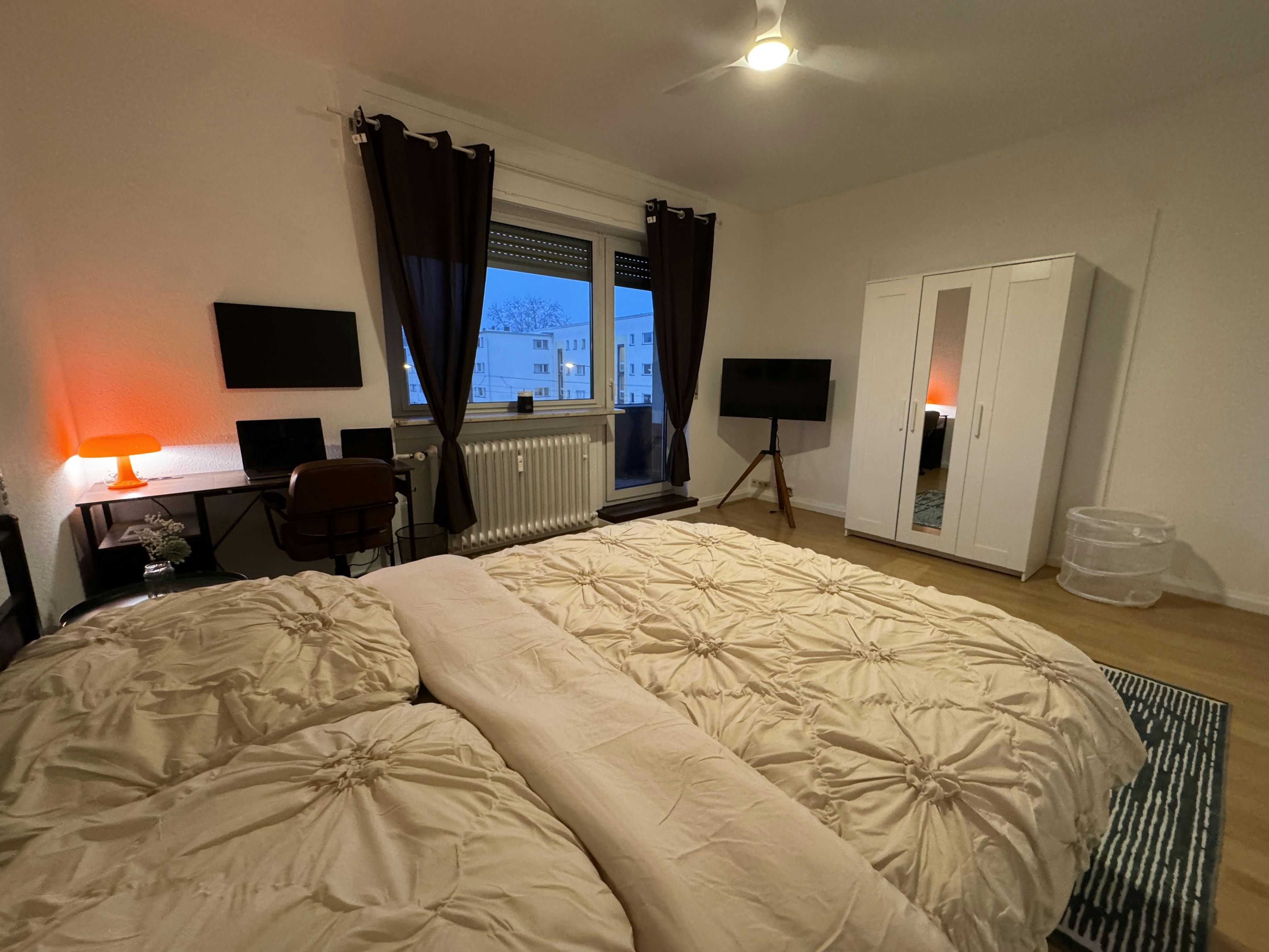 DEUTSCHE BESCHREIBUNG ?️ Zimmer (ab 01. Februar 2026 bezugsbereit) • Zimmer 1: ca. 21 m2 – 750 € Pauschalmiete • Zimmer 2: ca. 18 m2 mit privatem Balkon – 750 € Pauschalmiete Alle Zimmer sind identisch ausgestattet – der einzige Unterschied ist Zimmer 2 mit eigenem Balkon. Wohnen Hier wartet Erstbezug nach kompletter Renovierung und Neumöblierung. Die Wohnung wurde frisch renoviert und hochwertig ausgestattet. Jedes Zimmer ist hell, abschließbar und großzügig geschnitten. Zur Ausstattung gehören ein großes Bett (160 × 200 cm) mit hochwertiger, extra dicker Matratze, Decke, Kissen und Matratzenschoner. Ergänzt wird das Ganze durch einen Kleiderschrank mit Spiegel, Schreibtisch mit Lampe, Wandtafel, Fernseher mit Standfuß, Vorhänge,...