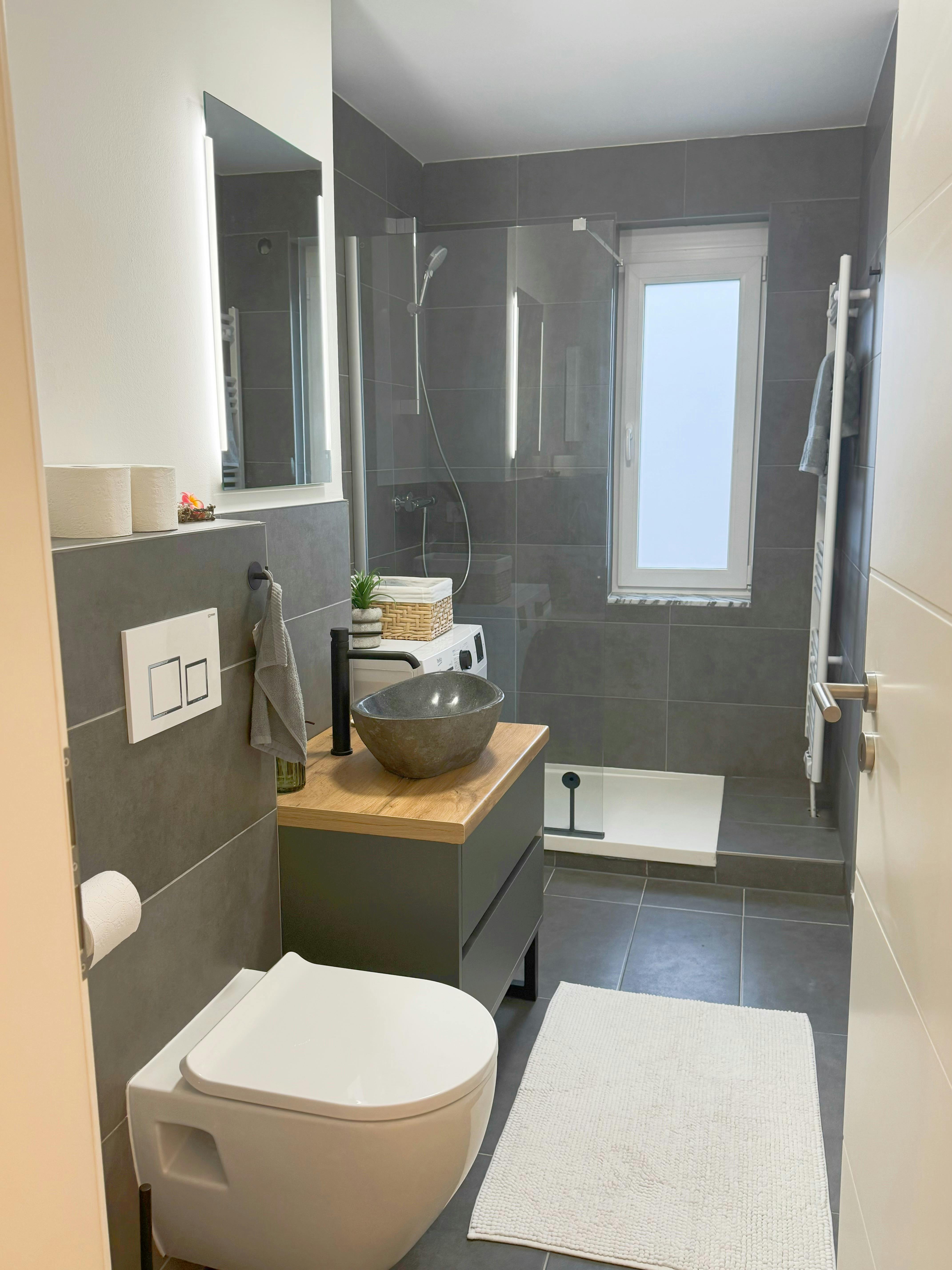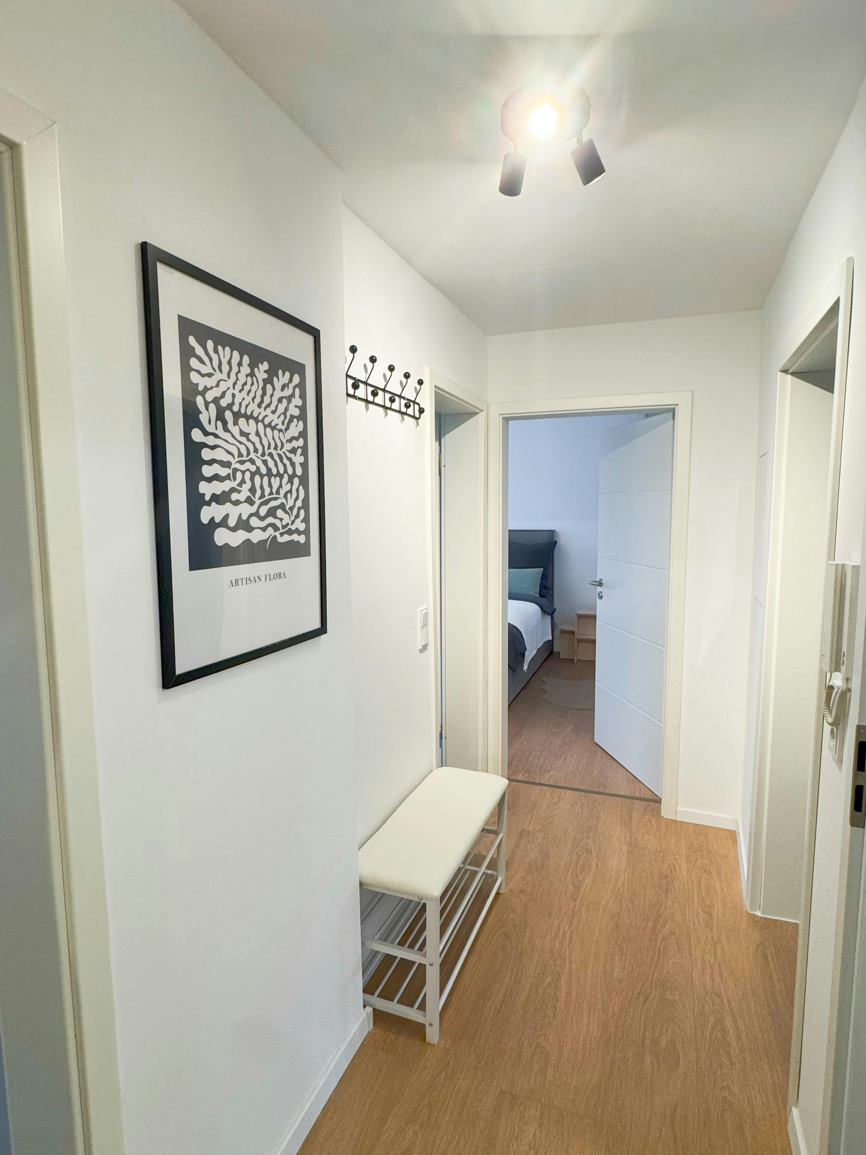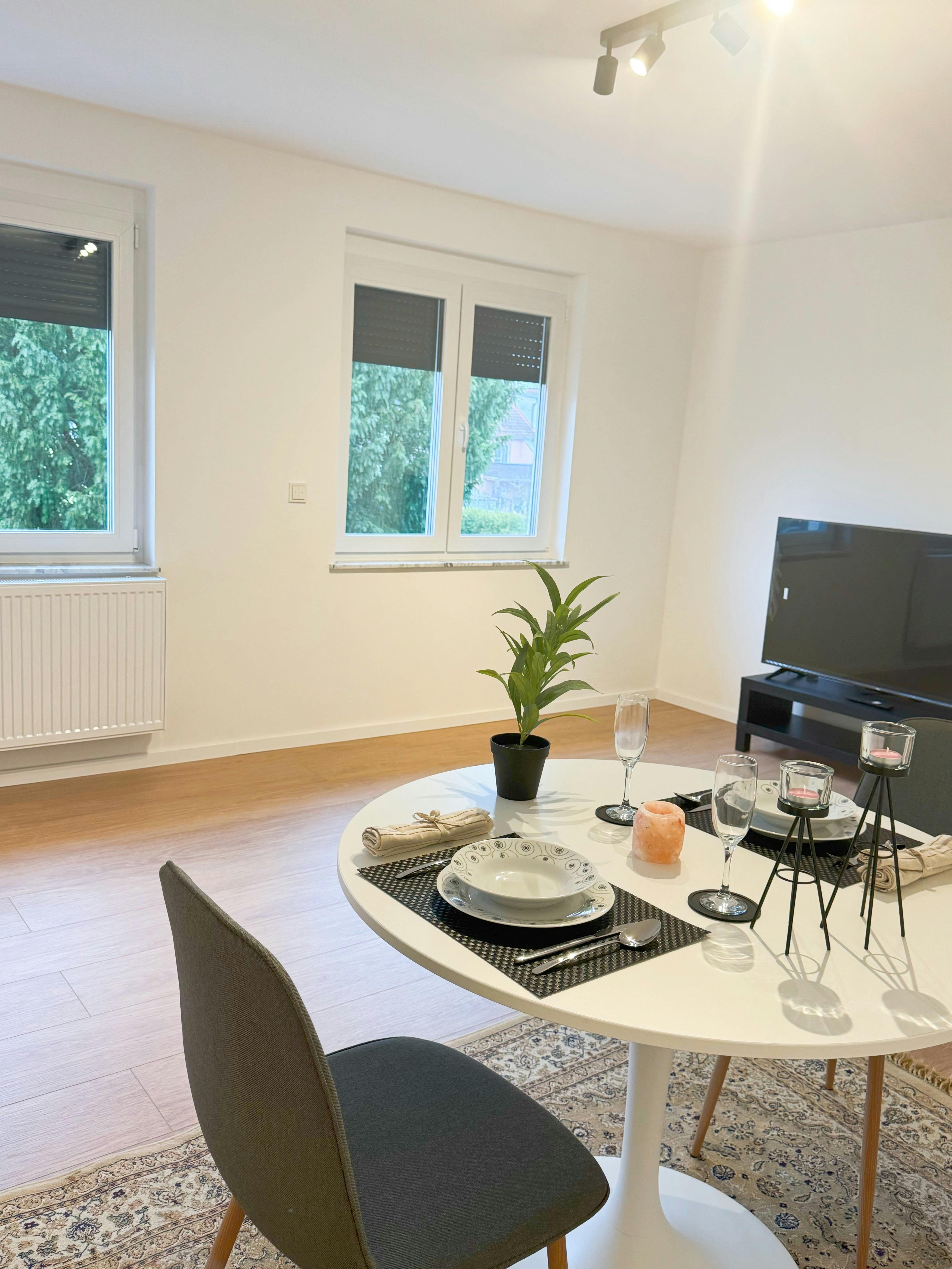 Zur Vermietung steht eine neu renovierte, voll möblierte Wohnung mit ca. 56 m2 in einem gepflegten 3-Parteien-Haus. Die Wohnung wird zum Erstbezug angeboten und ist komplett ausgestattet – ideal für Einzelpersonen, Paare oder eine WG mit 2–3 Personen. Die Einbauküche verfügt über alle notwendigen Elektrogeräte sowie komplette Ausstattung (Geschirr, Besteck, Kaffeemaschine, Wasserkocher, Toaster, Töpfe & Pfannen etc.). Schlafzimmer mit Bett, Matratze, Schonbezug, Kissen, Decke, Kleiderschrank, Lampe sowie Balkon. Wohnzimmer mit 55-Zoll Smart TV, kann bei Bedarf als zusätzliches Schlafzimmer genutzt werden. Elektrische Rollläden in allen relevanten Räumen. Bei Nutzung als WG wird die Wohnung entsprechend ergänzt (Betten, Schränke, TVs je nach Bedarf). Gemeinschaftsgarten zur Mitbenutzung. Parkplatz nach...