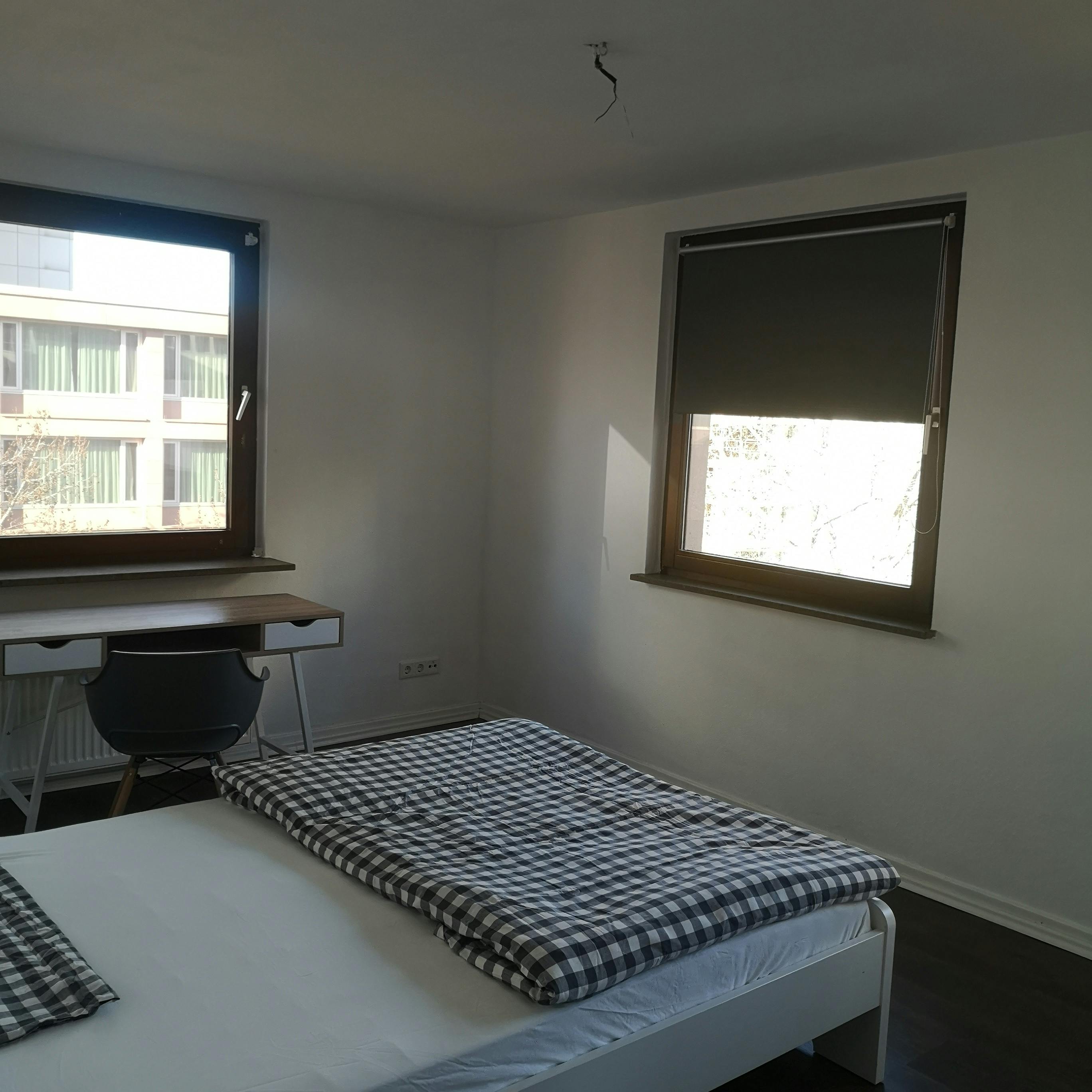 Room: All rooms in this newly renovated 4-room apartment are available for first occupancy. The flat offers four separate rooms with sizes of approx. 9 m2, 15 m2 and two rooms of 25 m2. The rental price is per room and varies depending on the room size. All rooms are fully furnished with bed, wardrobe, bedside table, desk and chair. Bed linen and towels are included. The shared areas consist of a fully equipped kitchen (oven, stove, microwave, refrigerator), one bathroom and a hallway. WiFi is available throughout the apartment. The flat is completely move-in ready. Location: Located close to Alte Oper and...