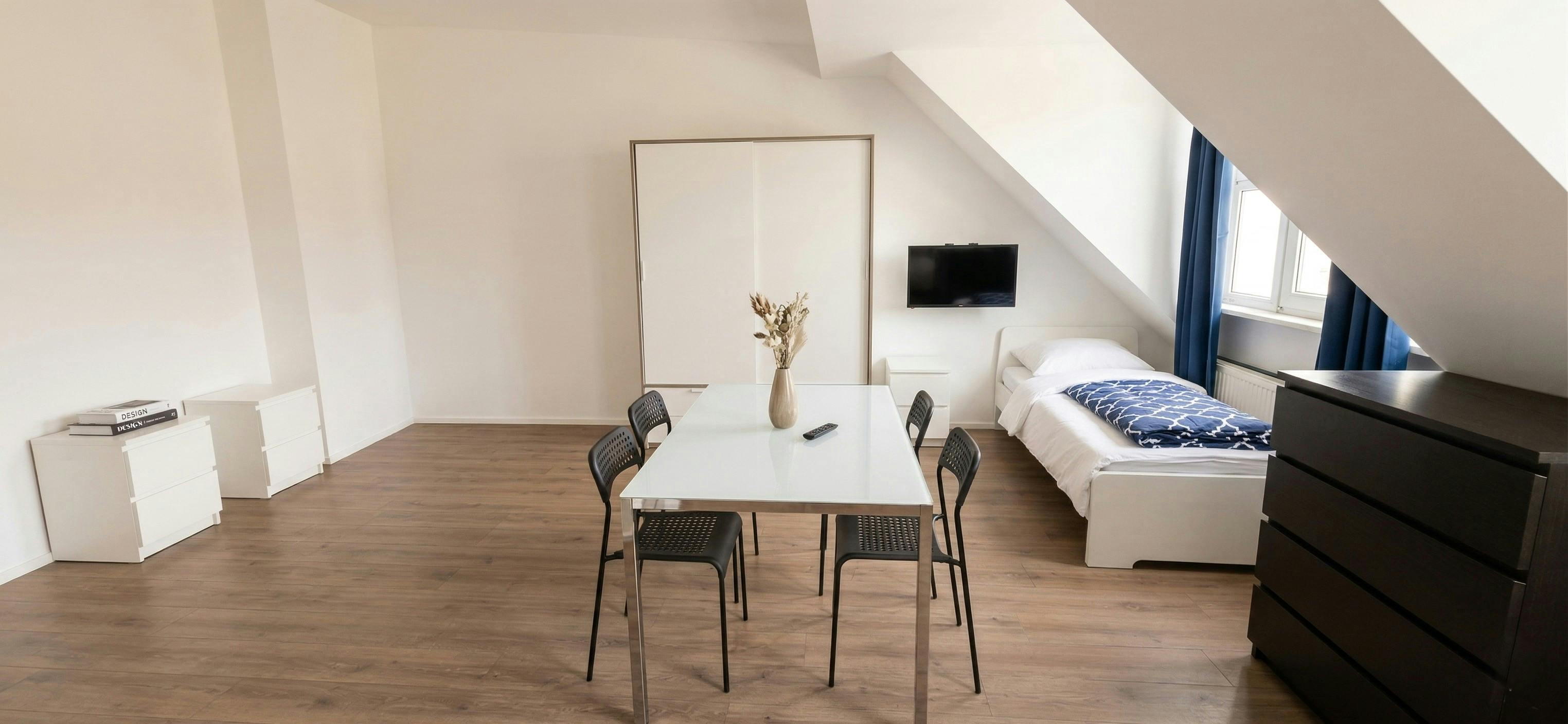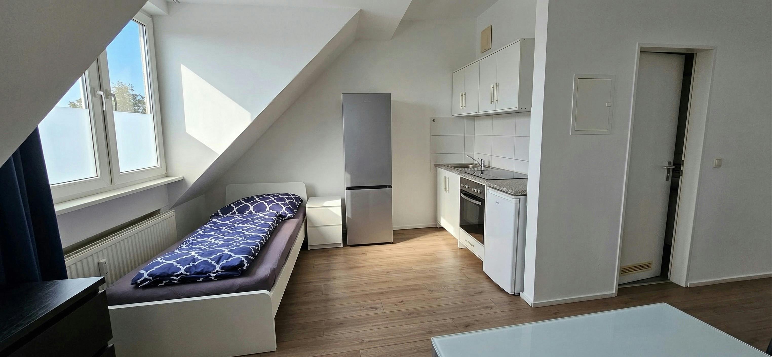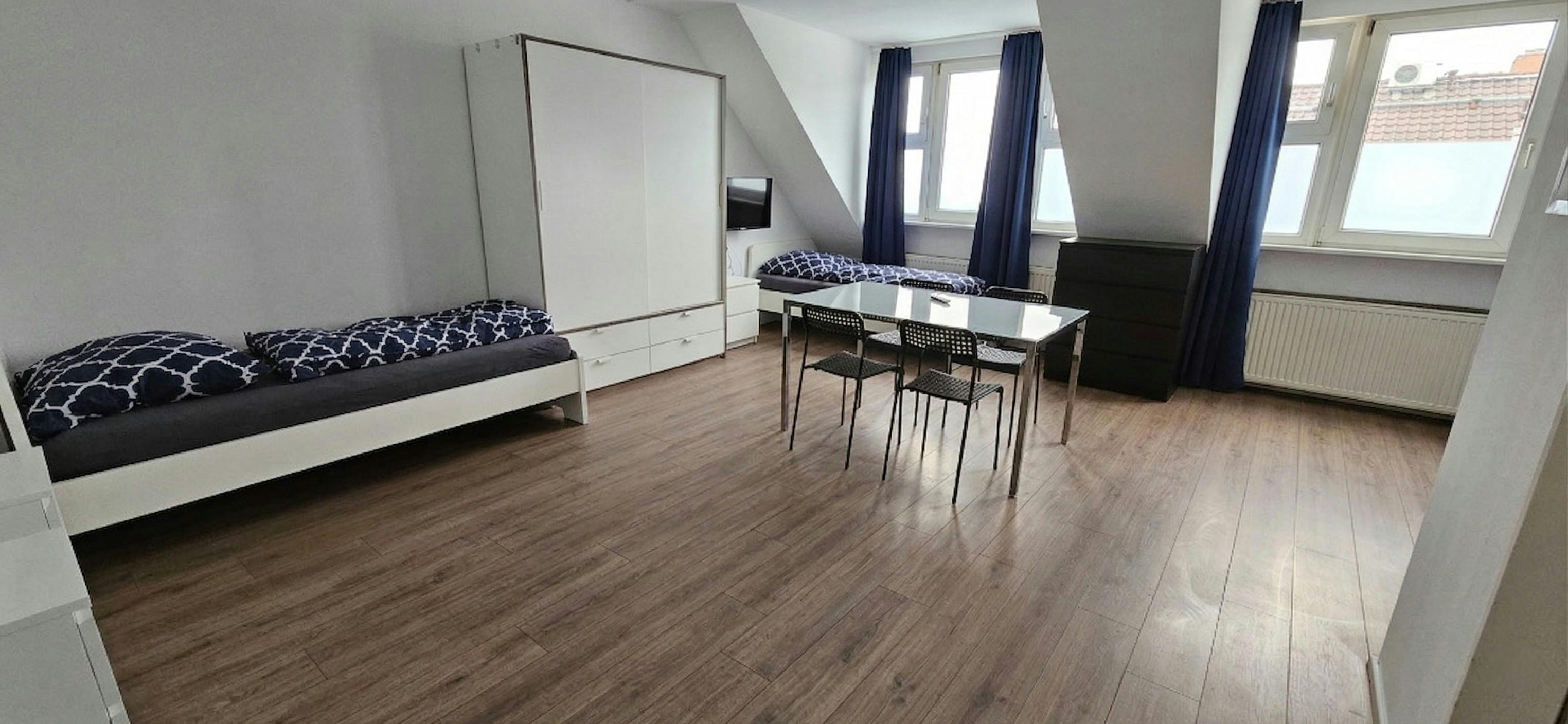 Moderne 1-Zimmer-Wohnung mit Küche und Badezimmer in gut erreichbarer Lage von Frankfurt. Die Wohnung eignet sich für 2 Personen und verfügt über schnelles Internet und einen TV.