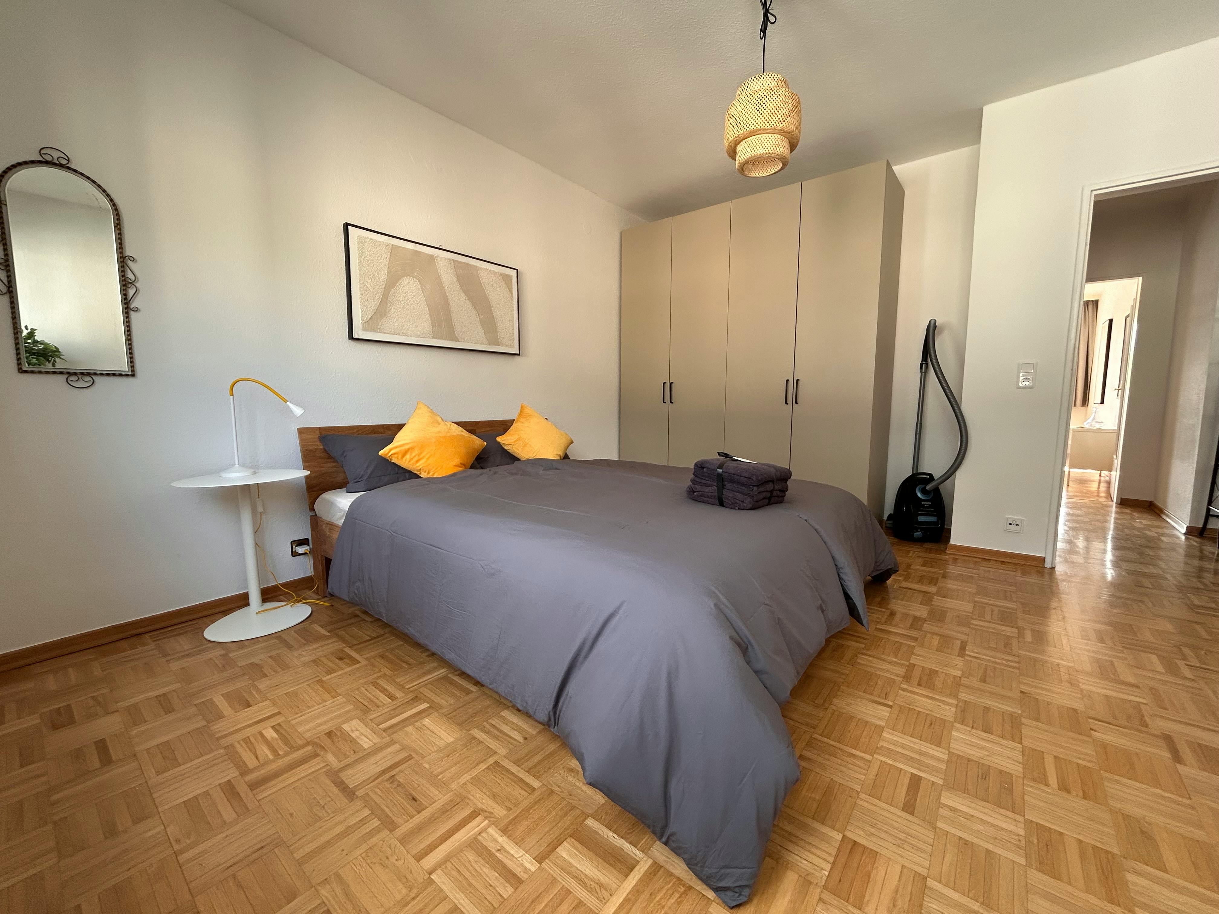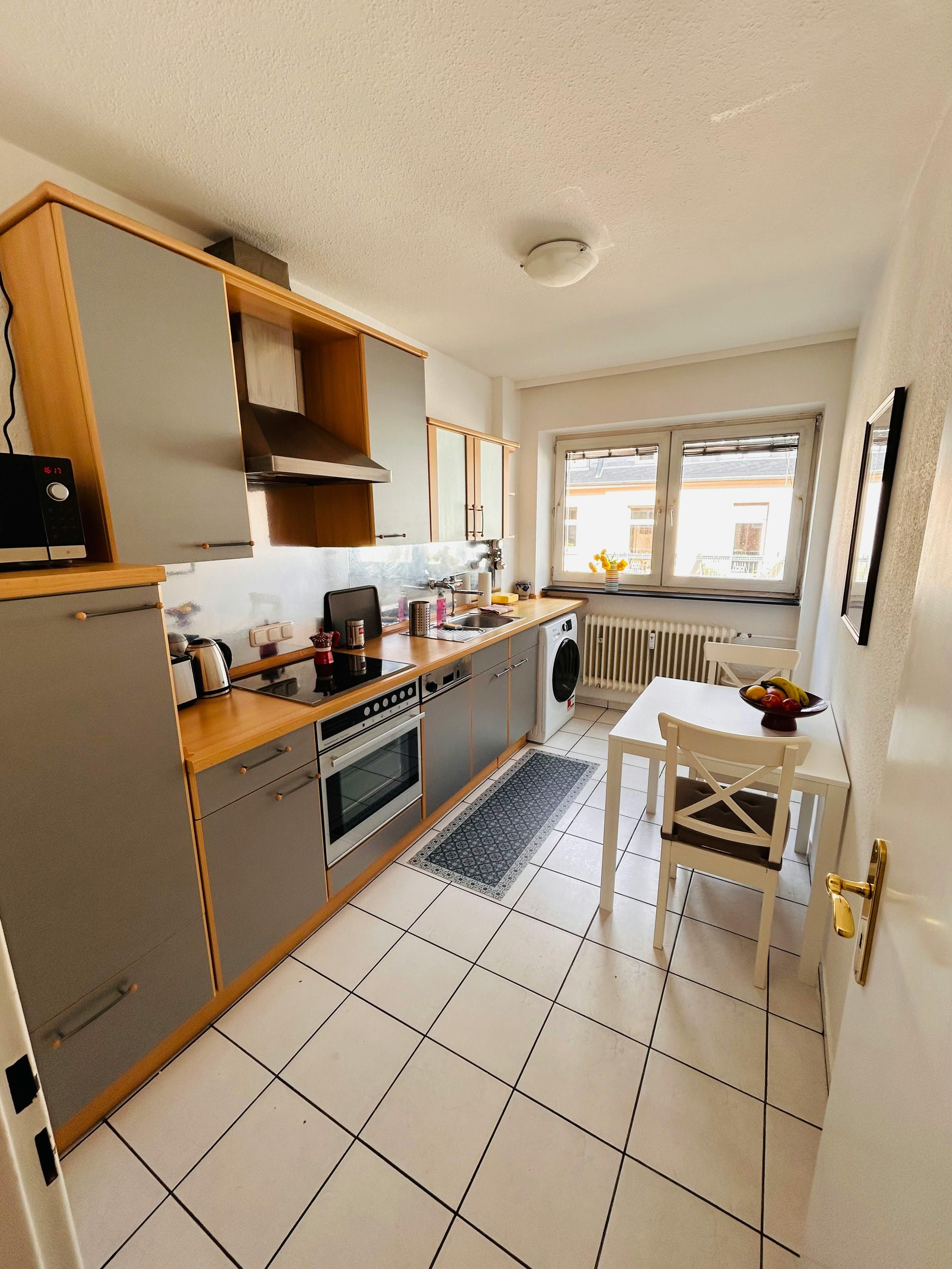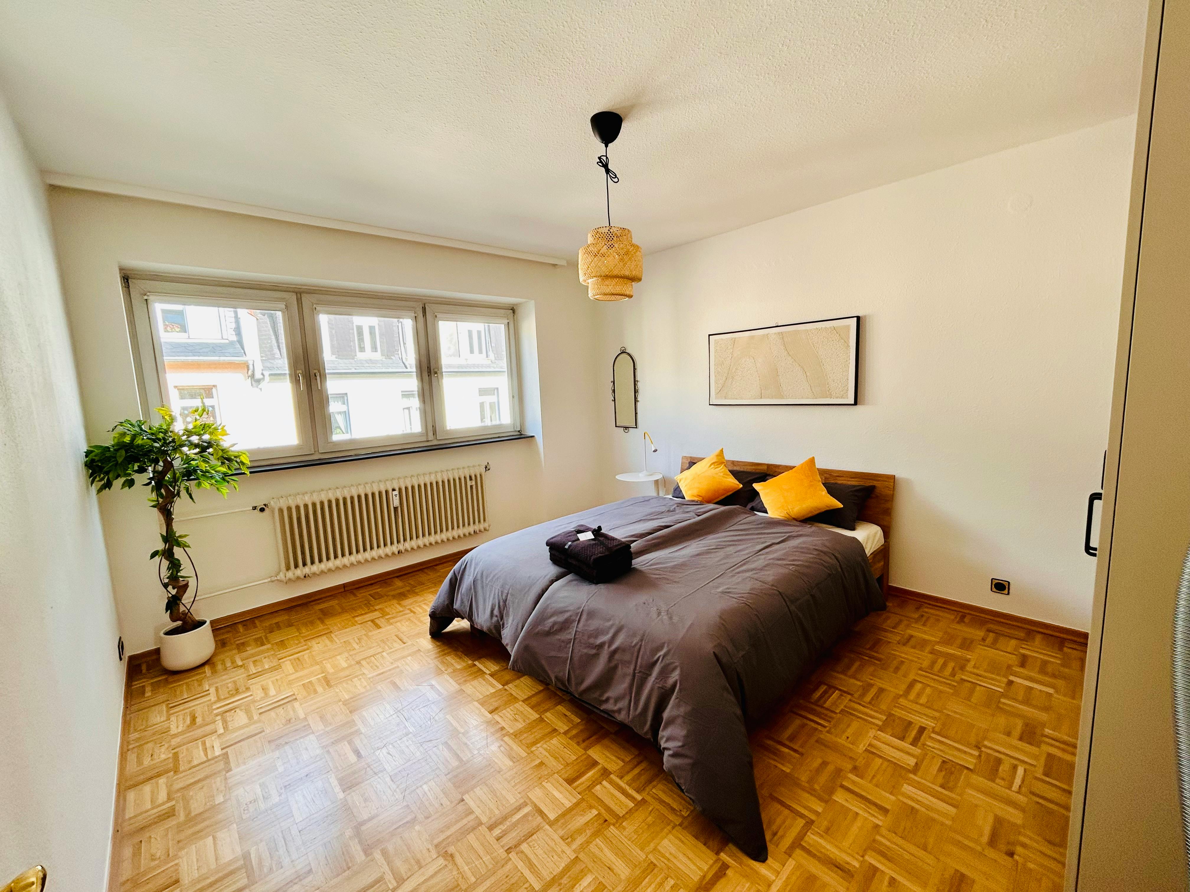 Beautiful, very bright two-room apartment in the popular and trendy Frankfurt Nordend. The apartment features a fully equipped kitchen with a stove, oven, refrigerator, freezer compartment, dishwasher, microwave, kettle, toaster, washing machine, and dryer, as well as an extendable dining table. In the living room, in addition to the sofa, there is a lovely desk and workspace right by the window. The apartment also has a balcony where you can sit comfortably and enjoy the evening sun. The bedroom includes a double bed and a large wardrobe. Prime location in the popular Frankfurt Nordend: Car, parking and public transport: • Subway station “Deutsche Nationalbibliothek” approx. 500...