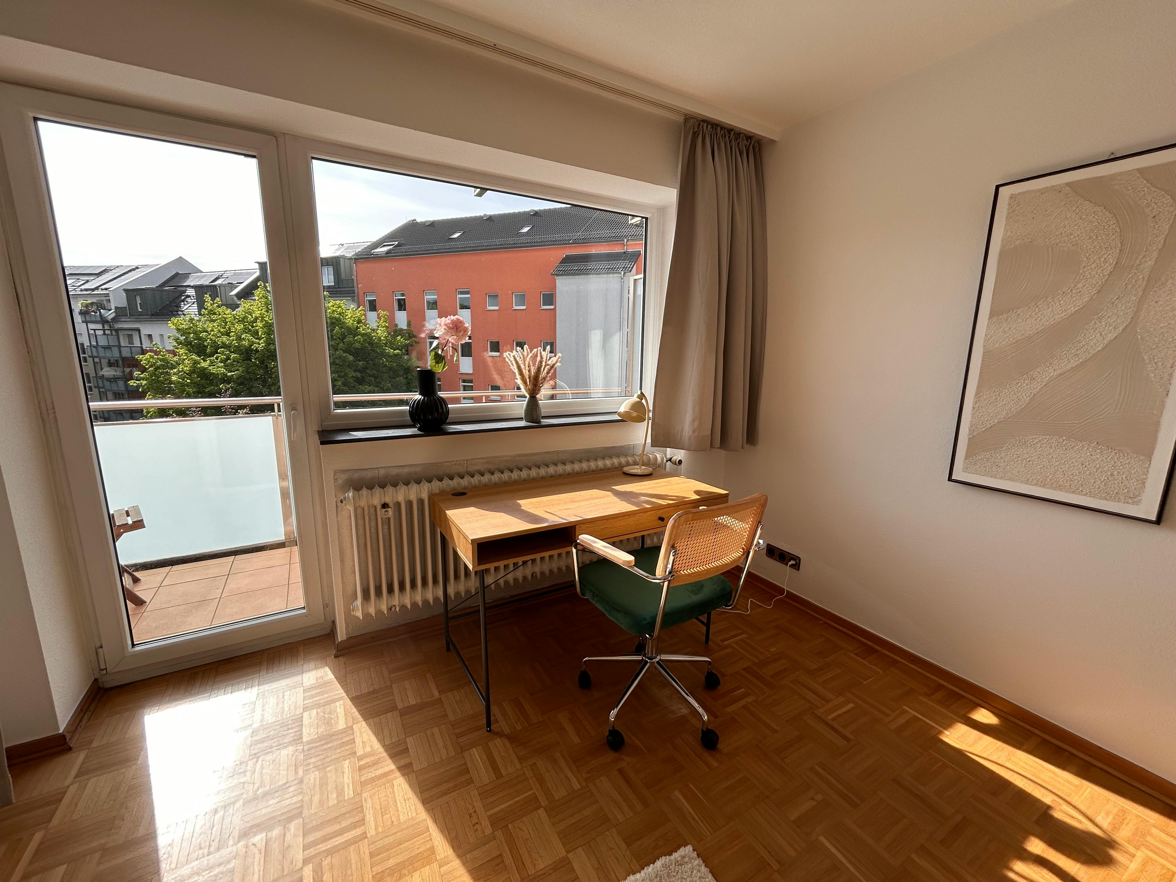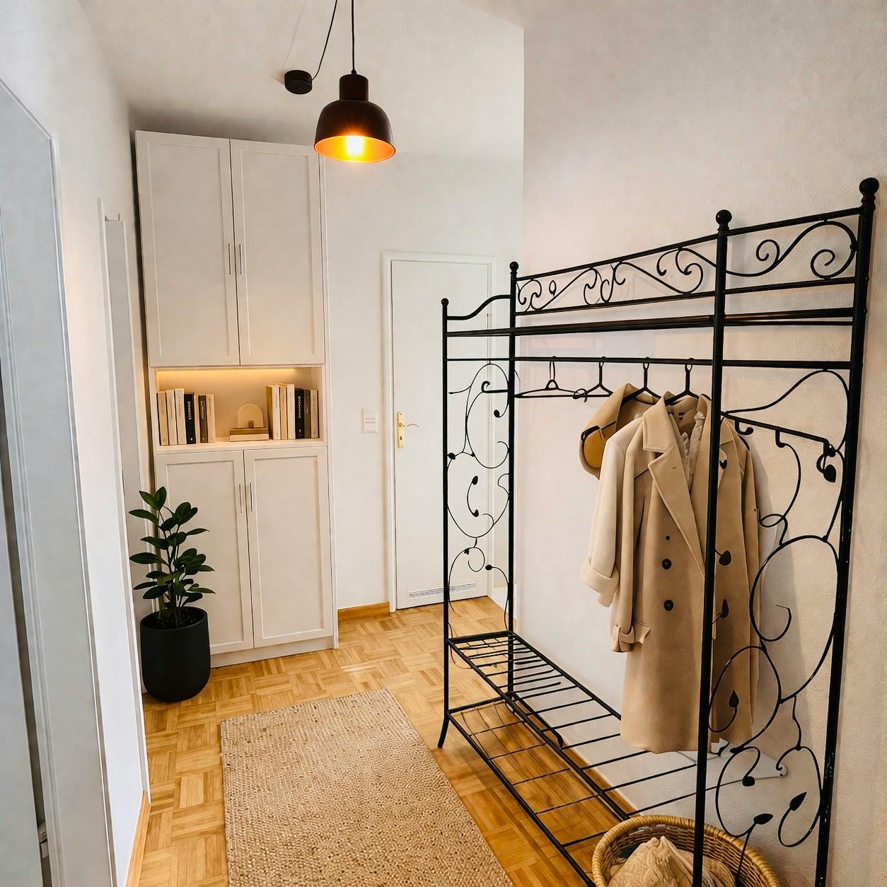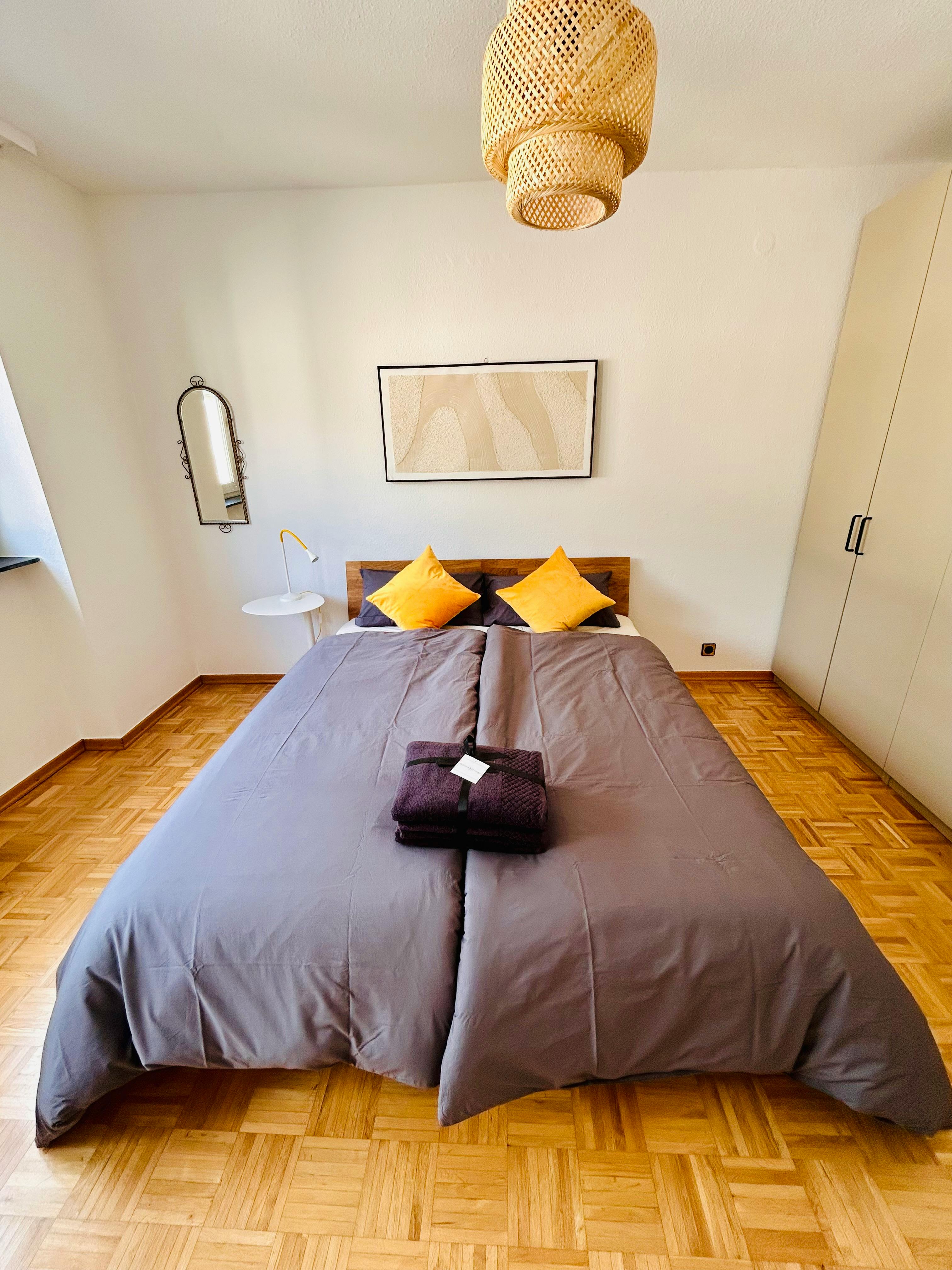 Beautiful, very bright two-room apartment in the popular and trendy Frankfurt Nordend. The apartment features a fully equipped kitchen with a stove, oven, refrigerator, freezer compartment, dishwasher, microwave, kettle, toaster, washing machine, and dryer, as well as an extendable dining table. In the living room, in addition to the sofa, there is a lovely desk and workspace right by the window. The apartment also has a balcony where you can sit comfortably and enjoy the evening sun. The bedroom includes a double bed and a large wardrobe. Prime location in the popular Frankfurt Nordend: Car, parking and public transport: • Subway station “Deutsche Nationalbibliothek” approx. 500...